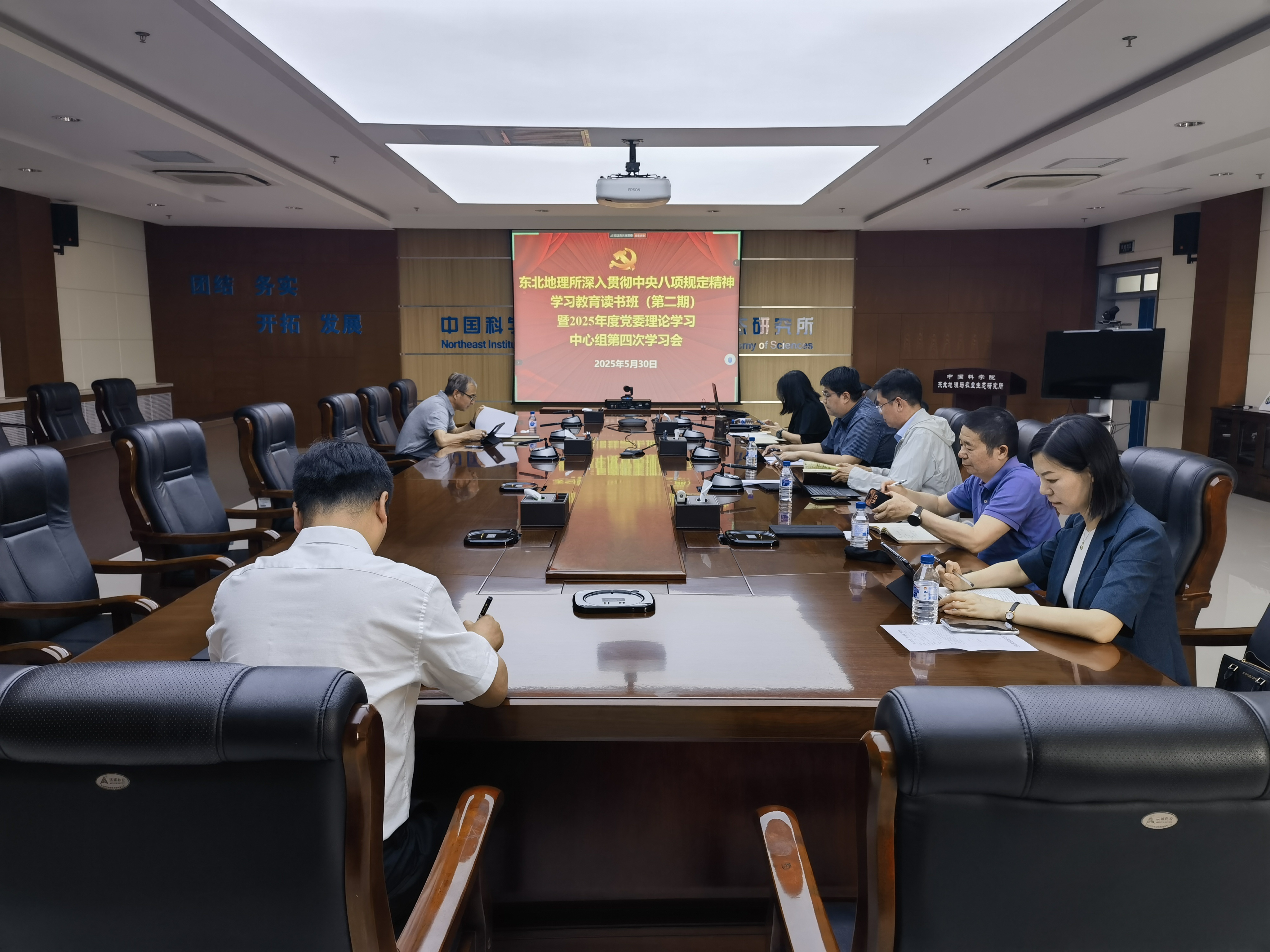 5月30日,中国科学院东北地理与农业生态研究所党委举办深入贯彻中央八项规定精神学习教育第二期读书班暨2025年第四次理论学习中心组集体学习会,继续深入学习贯彻习近平总书记关于加强党的作风建设的重要论述以及《党的十八大以来深入贯彻中央八项规定精神的成效和经验》等近期重点学习内容,党委书记、副所长王宗明主持读书班,党委理论学习中心组全体成员参加读书班。