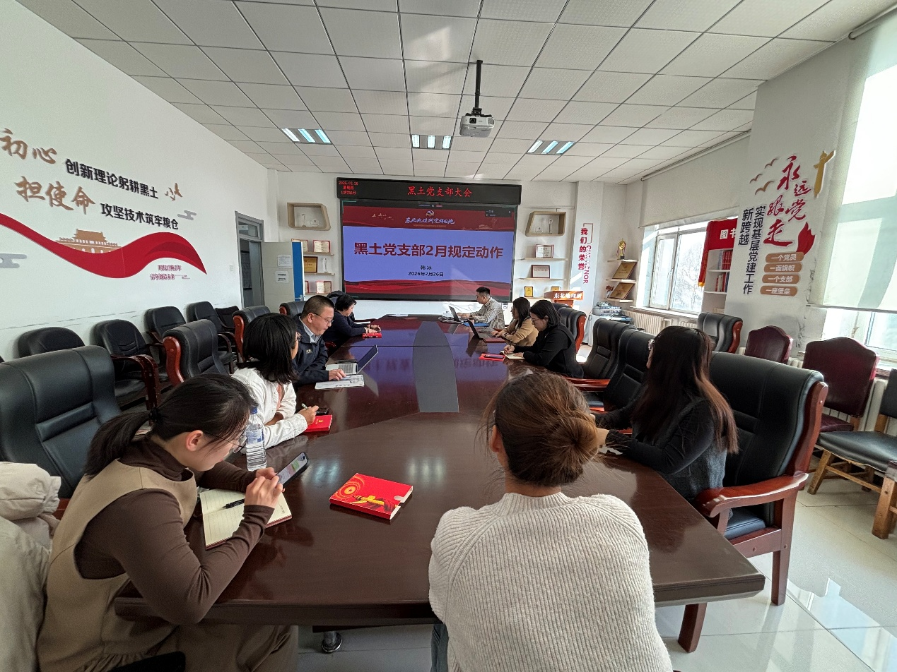 2026年2月26日,黑土党支部在农业楼四楼会议室组织召开支部党员大会,集中学习2026年中央一号文件精神及中国科学院2026年度工作会议精神。会议由党支部书记梁爱珍主持。