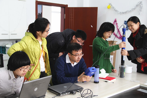 由北京理加联合科技有限公司提供的EXO1多参数水质分析仪于2013年底到货,2014年2月24日上午,理加联合工程师何少慧与中国科学院东北地理与农业生态研究所赵凯、郑兴明、姜涛、祝惠、欧阳等老师在中国科学院东北地理与农业生态所遥感站共同进行了多参数水质分析仪的验收工作,对仪器进行拆封、清点配置清单,货物齐全,紧接着对设备进行了安装,将各个传感器连接到分析仪主机上,将软件安装到电脑上,连接投影仪对软件进行培训,工程师讲解了软件各个功能的使用,现场测量每个传感器,参数均在正常范围之内,对传感器进行校准,无异常值,然后用野外用手持式读表替代电脑控制分析仪主机,仪器正常工作。