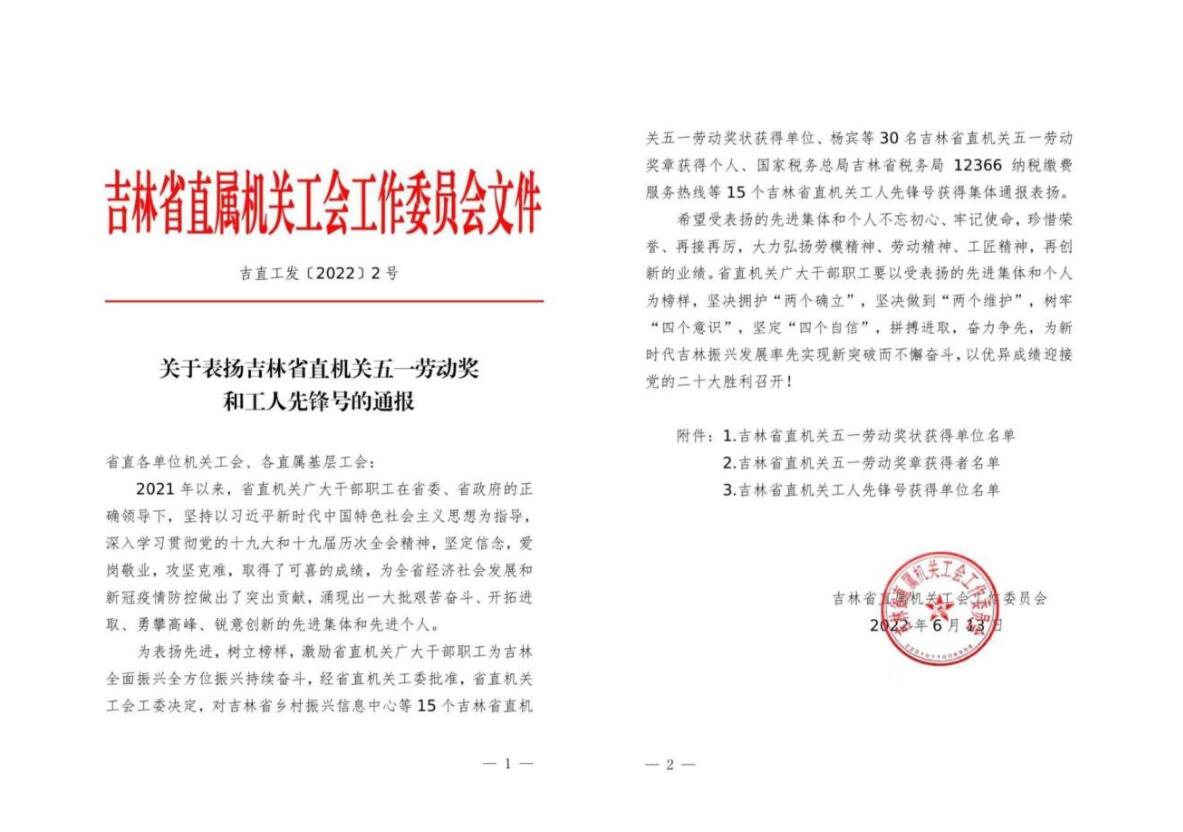 为表扬先进,树立榜样,激励省直机关广大干部职工为吉林全面振兴全方位振兴持续奋斗,经省直机关工委批准,省直机关工会工委决定,对15个吉林省直机关五一劳动奖状获得单位、30名吉林省直机关五一劳动奖章获得个人、15个吉林省直机关工人先锋号获得集体通报表扬。东北地理所获得吉林省直机关五一劳动奖状。