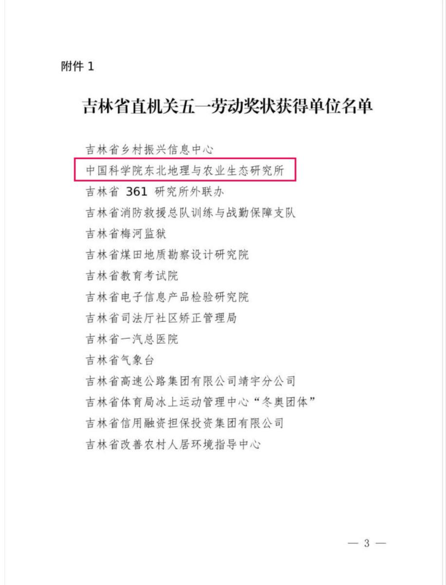 喜报频传!东北地理所荣获吉林省直机关五一劳动奖状!