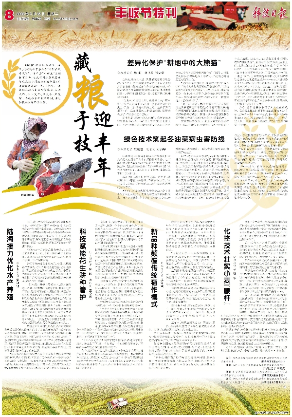 编者按秋分至,秋收忙。今天,我们迎来了第八个“中国农民丰收节”。今年是“十四五”规划收官之年,也是巩固拓展脱贫攻坚成果同乡村振兴有效衔接5年过渡期的最后一年。5年间,一大批农业技术走向田间地头、大江大洋,让土更肥、米更香、鱼更鲜。本报推出丰收节特刊,讲述科技兴农的鲜活故事。