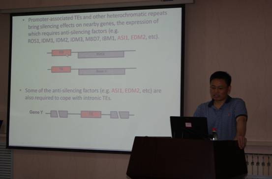 朱健康教授以“Epigenetic gene silencing and anti-silencing in Arabidopsis”为题,通过对启动子甲基化与去甲基化的研究,系统全面地介绍了表观遗传学水平上的基因沉默与反沉默的分子机制。并初步探讨了表观遗传学在杂种优势研究中的应用。