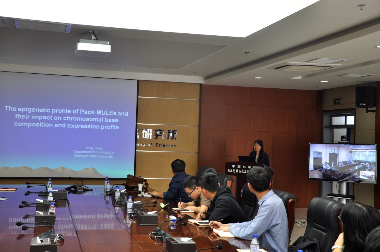 2018年4月24日上午,“大豆分子设计育种”创新国际团队海外专家——美国密歇根州立大学蒋宁教授在中国科学院东北地理与农业生态研究所做了题为“The epigenetic profile of Pack-MULEs and their impact on chromosomal base composition and expression spectrum”的学术报告,长春园区和哈尔滨园区的科研人员和学生50余人参加了这次报告会。