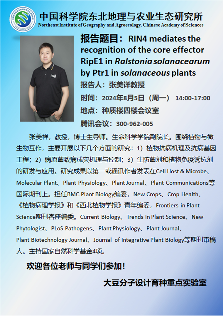 RIN4 mediates the recognition of the core effector RipE1 in Ralstonia solanacearum by Ptr1 in solanaceous plants-张美详 教授