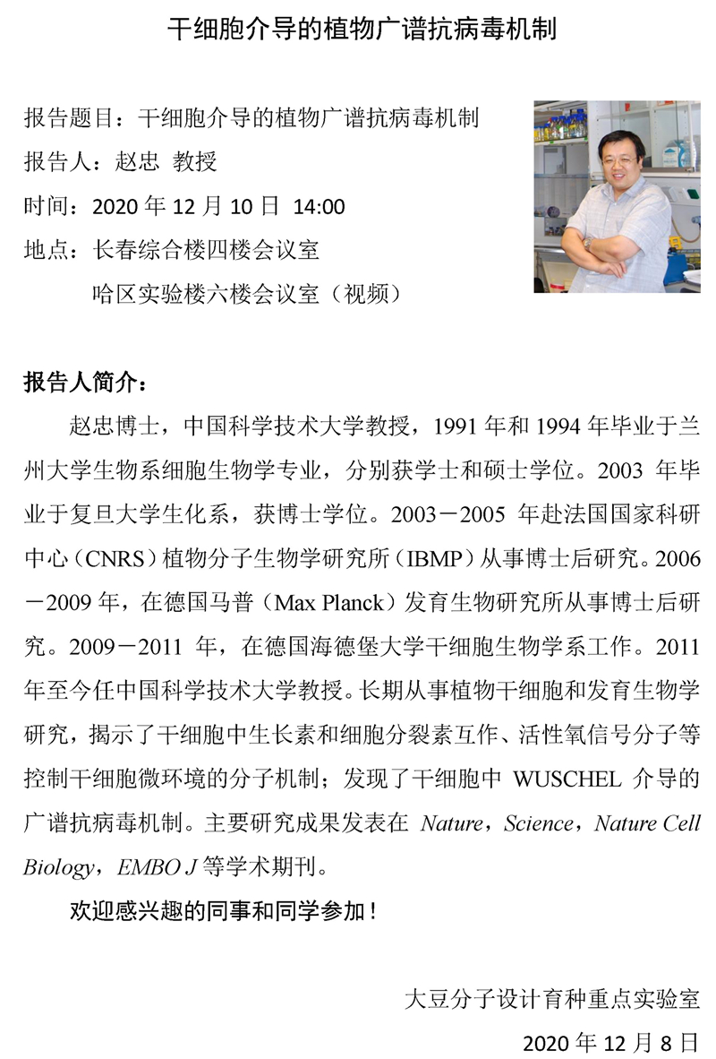 植物干细胞介导的抗病毒免疫机制-赵忠 教授