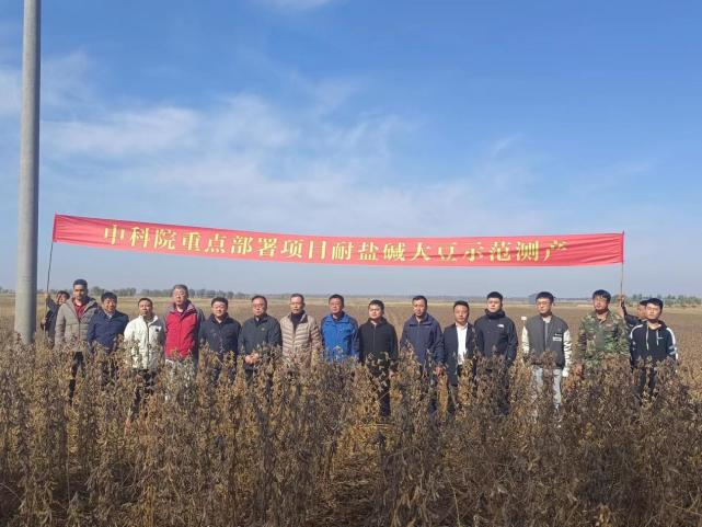 10月7日和9日,为了测试2021年育成的耐盐碱大豆新品种“东生118”的田间表现,中国科学院东北地理与农业生态研究所(简称“东北地理所”)大豆分子设计育种学科组在松原市前郭县查干花镇八家子村和松原市长岭县长岭种马场两地的大豆示范田组织专家现场测产。