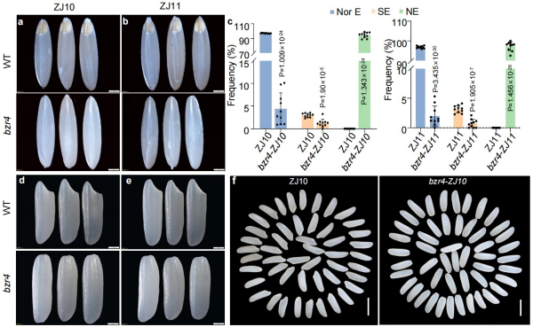 图1 水稻bzr4突变体产生无胚种子