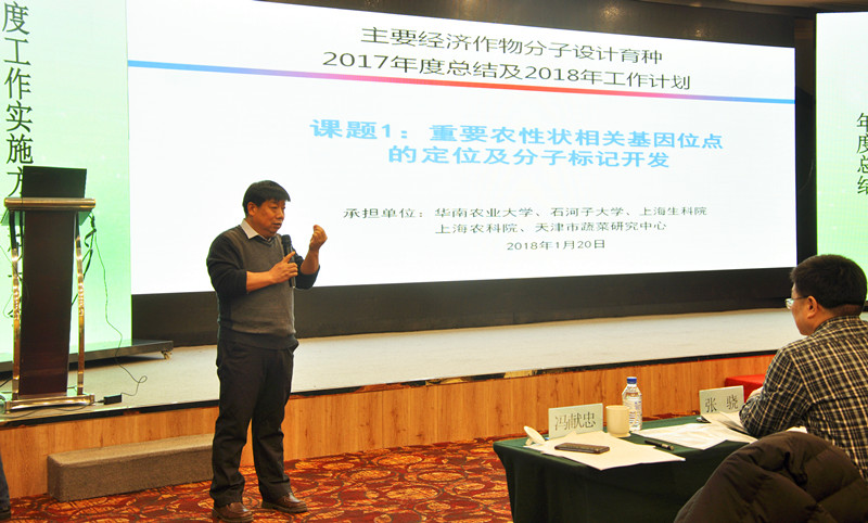 冯献忠汇报了项目概况、2017年度项目研究进展、2018年度项目实施方案、项目经费执行情况、项目组织管理情况及项目中存在的问题及对策等情况;天津市蔬菜研究中心魏爱民研究员、河南大学的张骁教授、冯献忠研究员、华南植物园的区永祥研究员和陕西省杂交油菜研究中心的穆建新研究员分别代表五个课题汇报了2017年度课题总结及2018年度课题工作计划实施方案。针对各课题的汇报情况,项目组开展了专题讨论研究,进一步完善了项目和课题的实施方案。