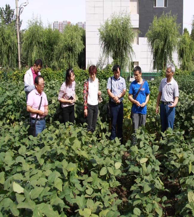 来访人员察看了在哈尔滨所区大豆辐射育种试验田中通过重离子辐射诱变育种中筛选的高产株系、黄化株系、卷叶株系、荚粒数变化株系以及通过审定的品种田间表现,听取了张秋英就重离子辐射诱变育种相关工作进展以及长远规划工作介绍,就辐射诱变在育种中的应用前景以及存在问题展开了深入探讨。李文建、王广金充分肯定了张秋英研究团队在重离子辐射诱变育种中取得的成绩以及在生理水平和表型水平的相关研究,认为利用辐射诱变筛选出特异性突变体对大豆研究具有重要的意义。中国科学院近代物理研究所科研人员对进一步的辐射处理给予了宝贵的意见,黑龙江省农科院科研人员就异黄酮等品质方面合作研究提出了详细的初步计划。大家就将来工作中可能存在的问题进行了充分探讨,并提出了具体合作思路。