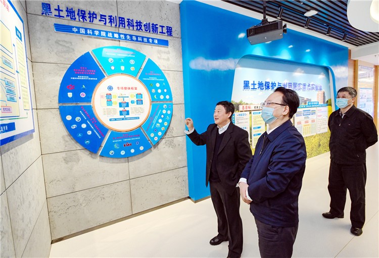 景俊海一行先后来到中科院大豆分子设计育种重点实验室、黑土区农业生态重点实验室实地察看科研项目进展,详细了解最新科研成果,鼓励科研人员加强原创性、引领性科技攻关,积极推动农业技术与人工智能、大数据等新技术深度融合,尽快在生物育种、水土流失防治、盐碱地治理等领域实现突破。