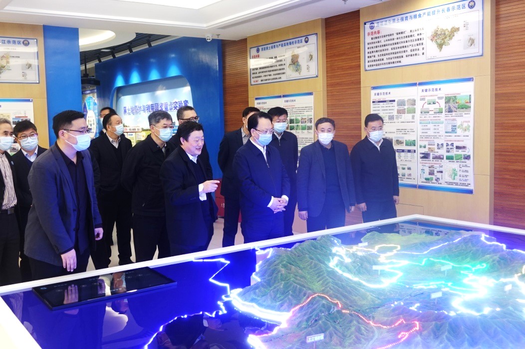 2月10日,吉林省委书记景俊海到中科院东北地理所,看望慰问一线科研人员,就黑土地保护利用工作进行调研。他强调,要深入贯彻习近平总书记视察吉林重要讲话重要指示精神特别是关于黑土地保护工作重要论述,扎实推动“黑土粮仓”科技会战,科学保护、有效利用黑土地这个“耕地中的大熊猫”,加快推动全省粮食产量迈上千亿斤台阶,助力吉林扛稳维护国家粮食安全“压舱石”重任。