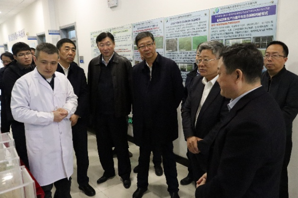 在农业楼二楼,调研组听取了苏打盐碱地改良技术的最新进展汇报。研究人员详细介绍了土壤改良剂研发、耐盐碱作物筛选及生态修复工程实施成效,重点展示“以稻治碱”“以草治碱”等技术的创新应用与规模化推广成果。孙东生强调要加快技术标准化进程,为盐碱地资源高效利用提供科技支撑。