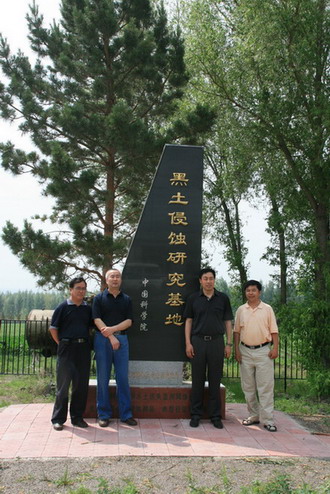 2010年6月14日水利部松辽委员会水保处、黑龙江省水利厅水保处、海伦市开发办、海伦市水务局等一行20余人到我所设在海伦市前进乡光荣村黑土侵蚀研究基地考察。基地负责人张兴义研究员向考察组展示了我所在基地开展的黑土侵蚀研究和水土流失监测工作,详细介绍了水土流失标准径流观测场、可移动径流观测装置、水土流失对作物生产力的影响黑土层剥离长期定位试验、新型大垄密植水土保持高产栽培模式、垄向区田和苗期垄沟深松水土保持耕作措施、侵蚀黑土农田超高产栽培模式等,指出水利部门开在的水土流失防治侧重于工程治理,虽有效地遏制了水土流失,但在作为我国最大的商品粮基地,国家和农民更关注的是坡耕地粮食生产能力的提升,如何实现粮食可持续高产稳产才是追求的最终目标,并向考察组展示了我所通过技术集成所建立的侵蚀黑土坡耕地地力快速提升生产模式,作物增产80%以上,当年实现由低产田向中产田的转变。此外还向考察组介绍了牛粪快速腐熟场和发展侵蚀沟治理模式。黑龙江省水利厅水保处同时兼任黑龙江省水土保持监测总站,黑土侵蚀基地中的标准坡面径流观测场和流域卡口站已被水利部列为全国水土流失监测网络的坡面侵蚀观测站和流域控制站,今年下拨专项建设经费。省水利厅水保监测总站同时对在建的卡口站和正在改造的径流观测场进行了检查,对于我所能够先行开展建设给予表扬。