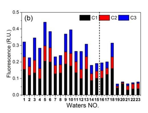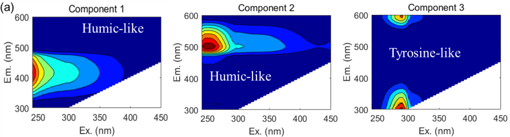 图1.三维荧光平行因子法识别的DOM组分及其在城市和非城市水体中的分布
