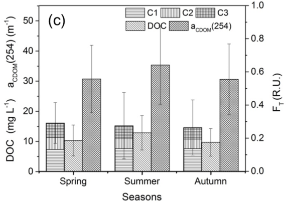 城市水体作为独特的自然景观为城市居民生活,水生态平衡,经济及工商业发展提供多种功能性服务。近年来,随着我国城市人口和经济的快速增长,各大中城市建成区面积迅速扩大,陆源人为干扰活动加剧,城市水体的承载力远超负荷,水体污染及富营养问题严峻,严重影响城市水体生态健康和流域居民的生活质量。溶解性有机物(DOM)作为水体中一种极其复杂的混合物,通常用于表征水生生态系统中有机质的含量、水质状况及水体所受内外源的影响。因此,针对城市水体开展DOM浓度及组分的时空变化研究迫在眉睫,以期阐释人类活动及城市扩张对水体DOM的影响机制。