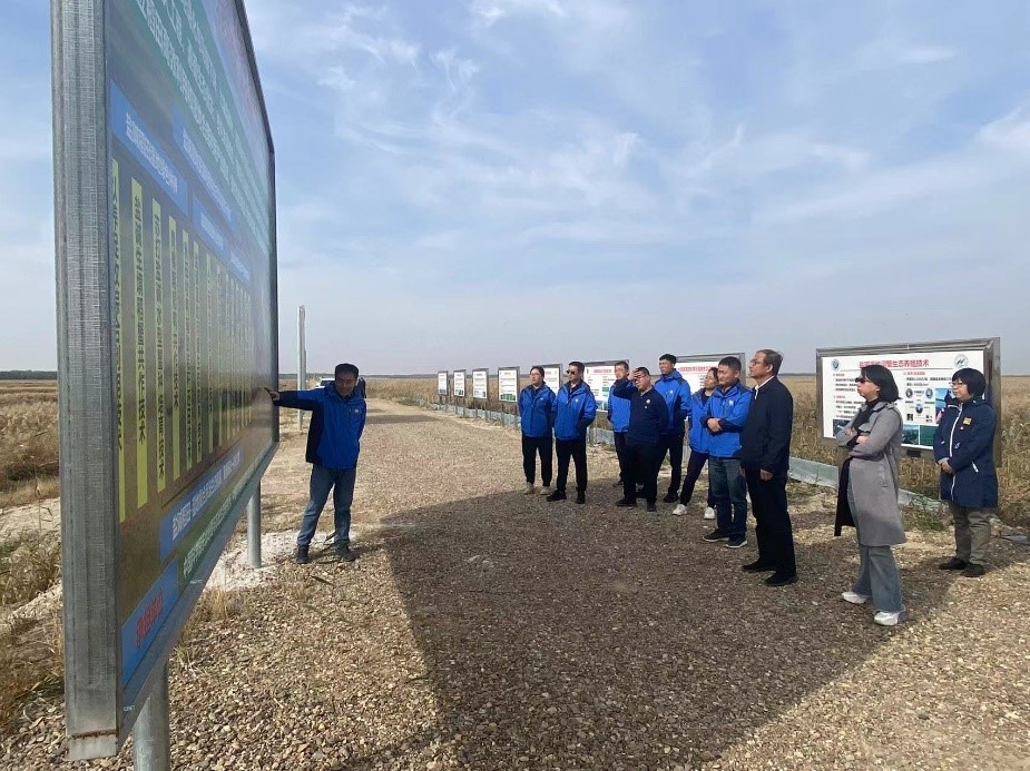 在牛心套保核心示范区,刘兴土“黑土会战”大安示范区青年突击队队员文波龙、李晓宇、刘宏远分别介绍了盐碱稻田绿色种养、稻田退水工程湿地消纳、水生经济植物栽培、鱼蟹生态放养、饲料替代、苇-菇-肥高效循环等技术的示范推广应用情况。在宣教展示馆,调研组一行还深入了解了牛心套保苇场和松嫩平原西部盐碱湿地生态研究站发展历史。