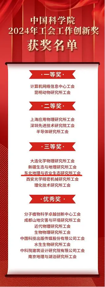 经过专家评审,共评选出一等奖2个,二等奖3个,三等奖5个,优秀奖8个;我所工会喜获中国科学院2024年工会工作创新奖三等奖。