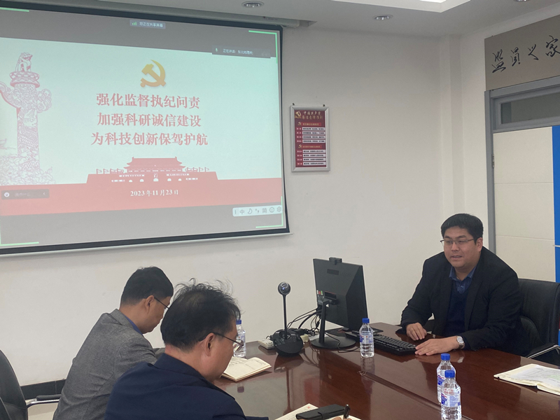 党委委员、纪委书记项尚讲题为《强化监督执纪问责 加强科研诚信建设 为科技创新保驾护航》的廉政党课,党课内容包括习近平总书记关于全面从严治党的重要论述、纪检工作的职责任务、加强科研诚信建设三部分内容,党课内容深入浅出,思路清晰,生动细致,既有理论要求又有实际案例。在党课结束时项尚提出了四点要求:第一,要认真学习领会党的二十大报告和习近平总书记系列重要讲话精神,特别是关于科技创新系列讲话精神及对中国科学院提出的重要指示批示精神,深刻把握党中央对加强科研诚信建设的总体要求,深入贯彻院党组对落实科研诚信建设的工作部署,在现有基础上不断总结经验做法,进一步提升科研诚信治理能力;第二,要进一步完善制度流程建设,严格遵守我所《科研原始记录管理办法》《科技成果管理办法》等制度规定,各部门形成监督合力,做好科研活动全流程诚信管理,共同营造风清气正的科研环境;第三,要强化科研诚信教育和培训,通过政策解读、警示教育等方式,进一步提升全所职工及研究生科研诚信意识,对科研伦理、科研原始数据记录、学术论著署名、科技奖励推荐等重点领域加强规范;第四,要坚持以全覆盖、零容忍的态度,加大对科研不端行为的惩戒力度,发现一起查处一起,确保研究所各项科研任务顺利开展。项尚对支部间联学共建活动给予了认可,建议可以开展形式丰富的联学共建活动,走出去,去实地参观考察学习,提升党员的党性修养,丰富党员的组织生活。