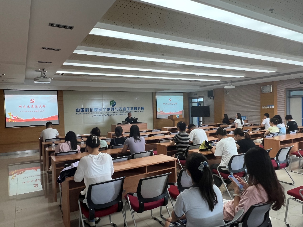 7月25日,研究生党总支在四楼报告厅召开党员大会开展党纪学习教育,会议由党总支书记苑春宇主持。