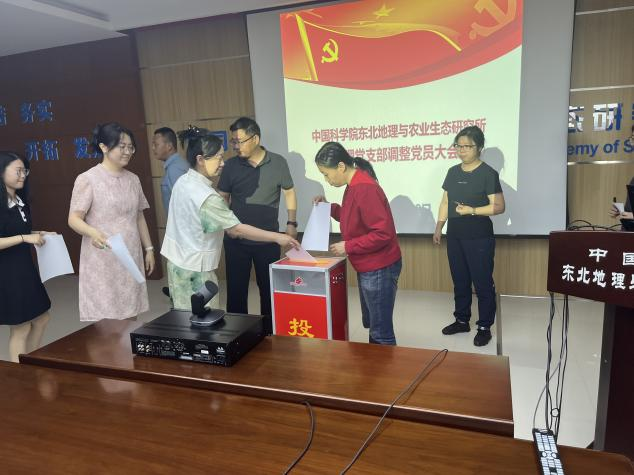会上,李颖介绍支部调整大会相关会议流程,方婷婷宣读《选举办法》(草案),全体党员举手表决一致通过,会议审议通过毛之夏为监票人,李星霖、吉丽为计票人,吴秋菊介绍6名候选人简况。在选举环节,监票人当场检查票箱,计票人分发选票并说明填写注意事项。全体党员以无记名投票方式进行选举,根据选举结果,5名同志当选为新一届支部委员会委员(按姓氏笔画为序):王明全、方婷婷、李颖、吴秋菊、张宇。全场以热烈掌声向当选同志表示祝贺。