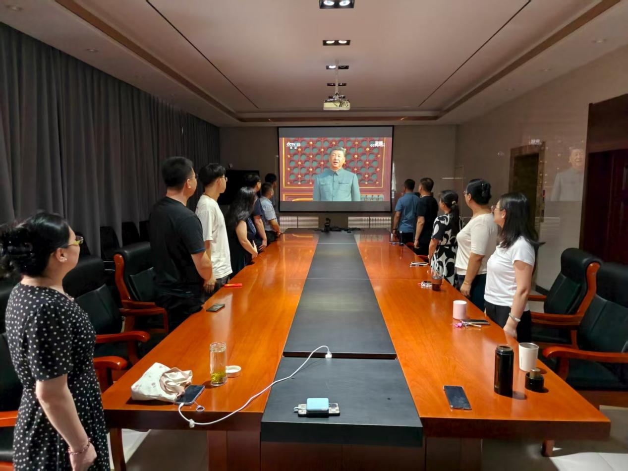 9月3日上午,农业中心管理党支部在综合楼六楼会议室开展弘扬爱国主义精神教育系列活动,组织支部党员共同观看纪念中国人民抗日战争暨世界反法西斯战争胜利80周年阅兵盛典。
