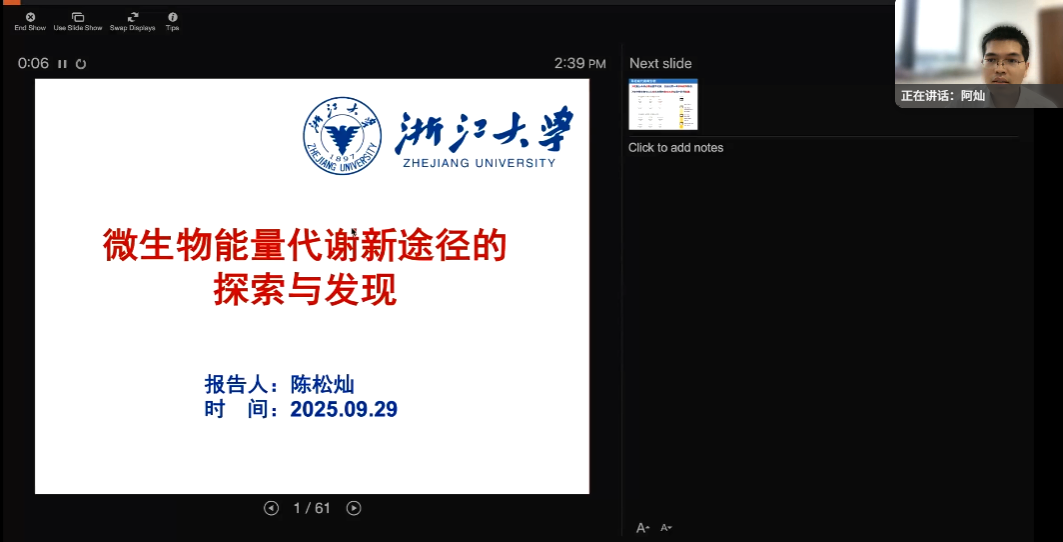 本次会议特别设置了党总支“党建促进科技创新”系列讲座第一讲,邀请浙江大学的陈松灿研究员做“微生物能量代谢新途径的探索与发现”专题报告。陈松灿详细介绍了他的两项研究工作,一是关于微生物能量代谢新途径的探索与发现,二是关于硫氧化和铁还原过程的耦合,同时还分享了他的科研经历和体会,以及对未来科研工作的展望,引发强烈共鸣。在互动环节,陈松灿还同与会党员就科研过程中遇到的问题进行深入交流。