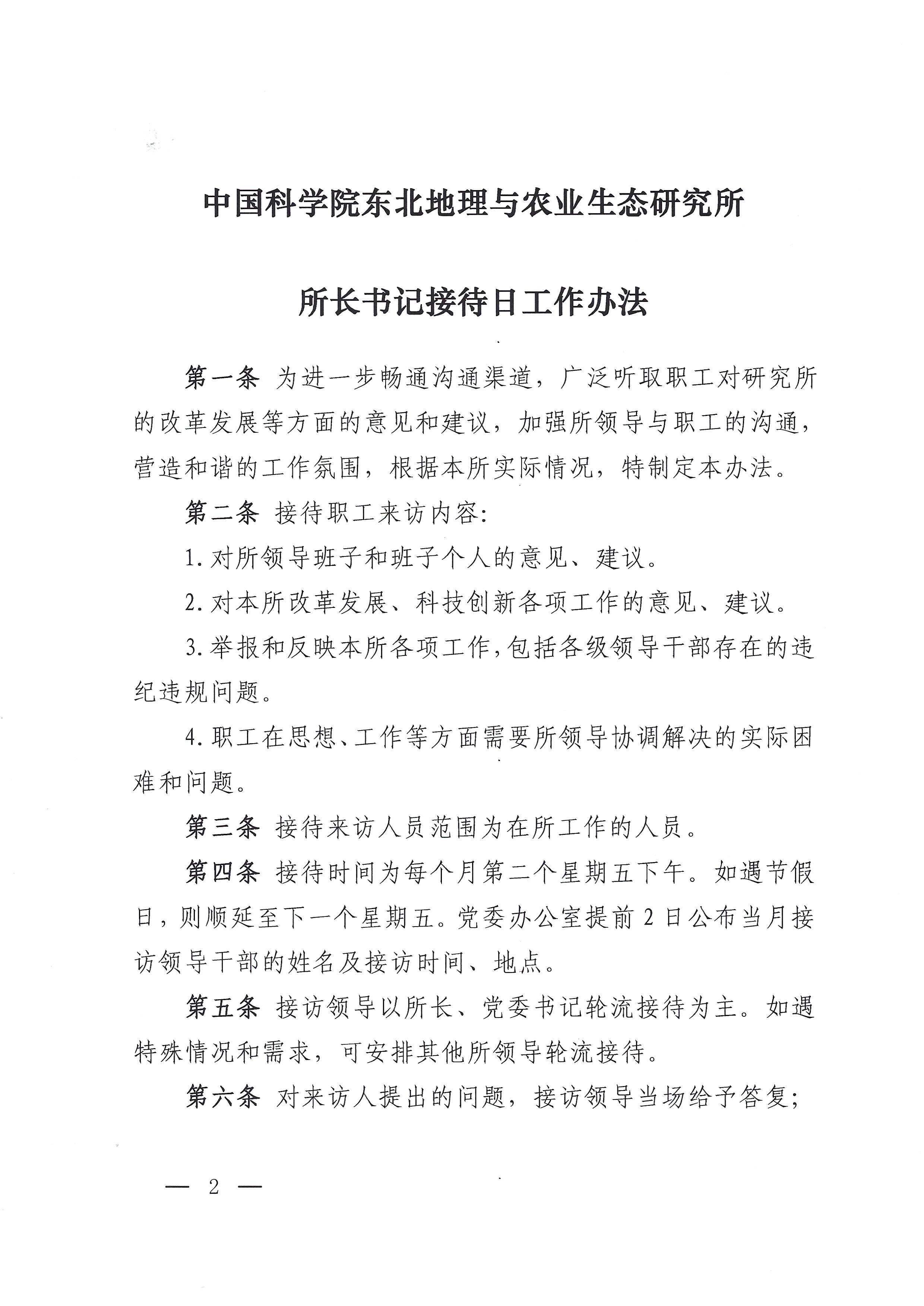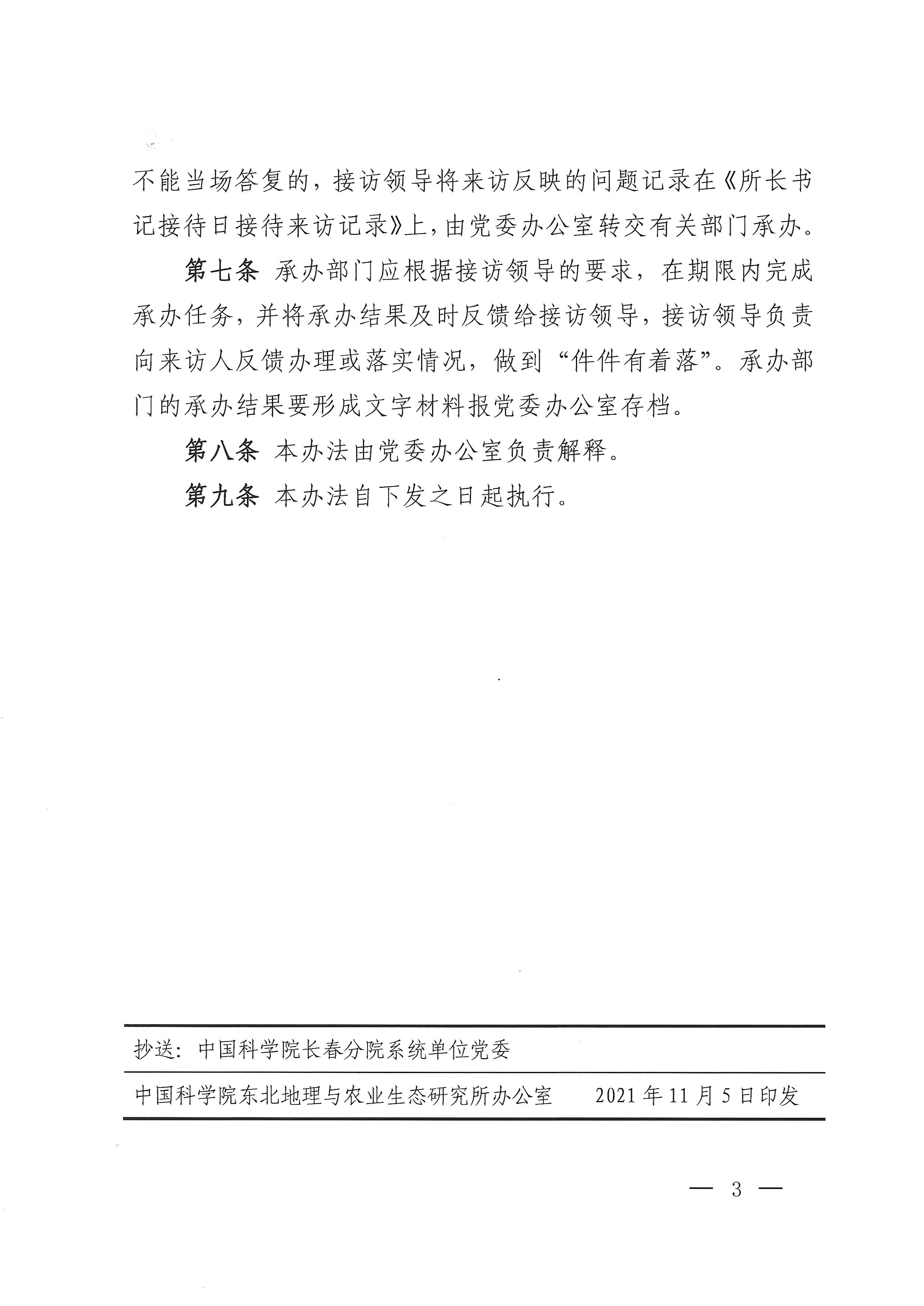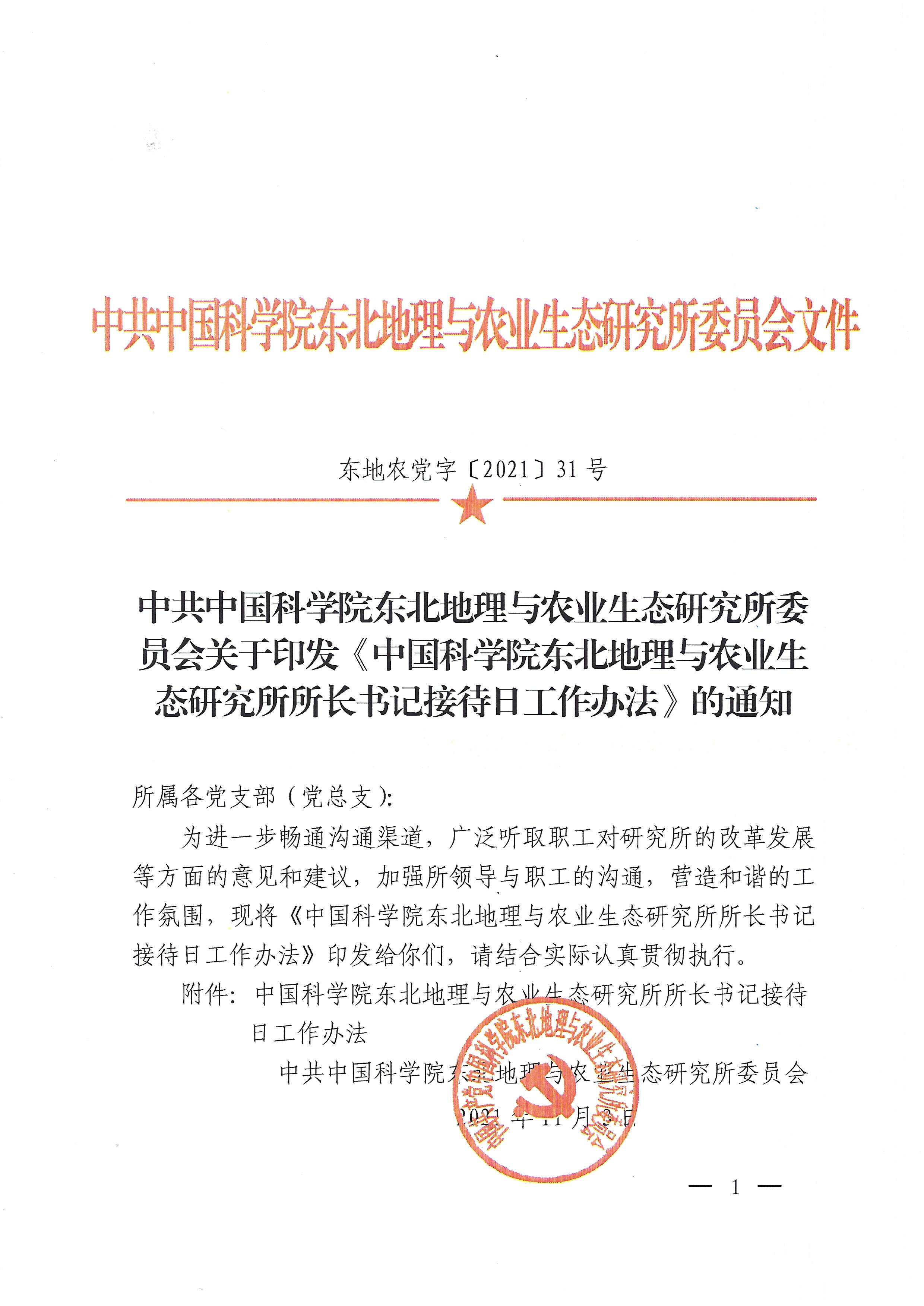 东地农党字【2021】31号文件-中共中国科学院东北地理与农业生态研究所委员会关于印发所长书记接待日工作办法的通知