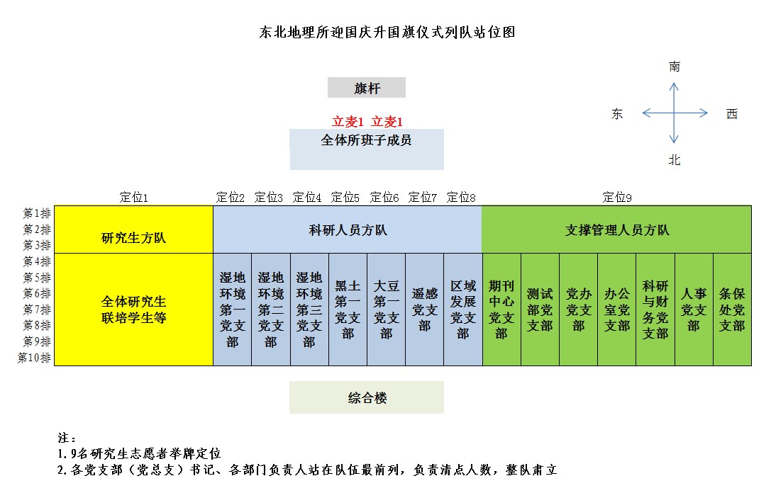 附:东北地理所迎国庆升国旗仪式列队站位图
