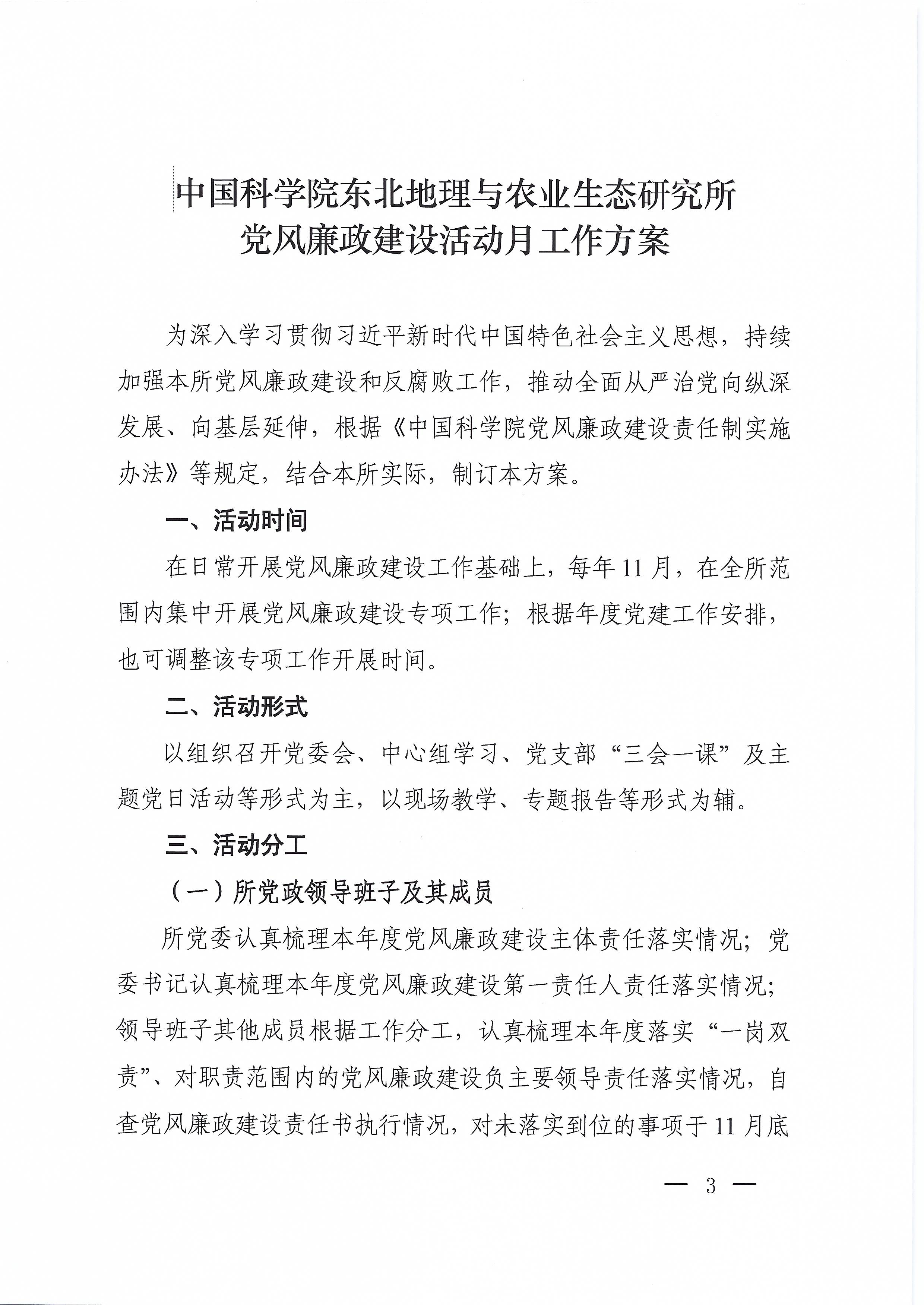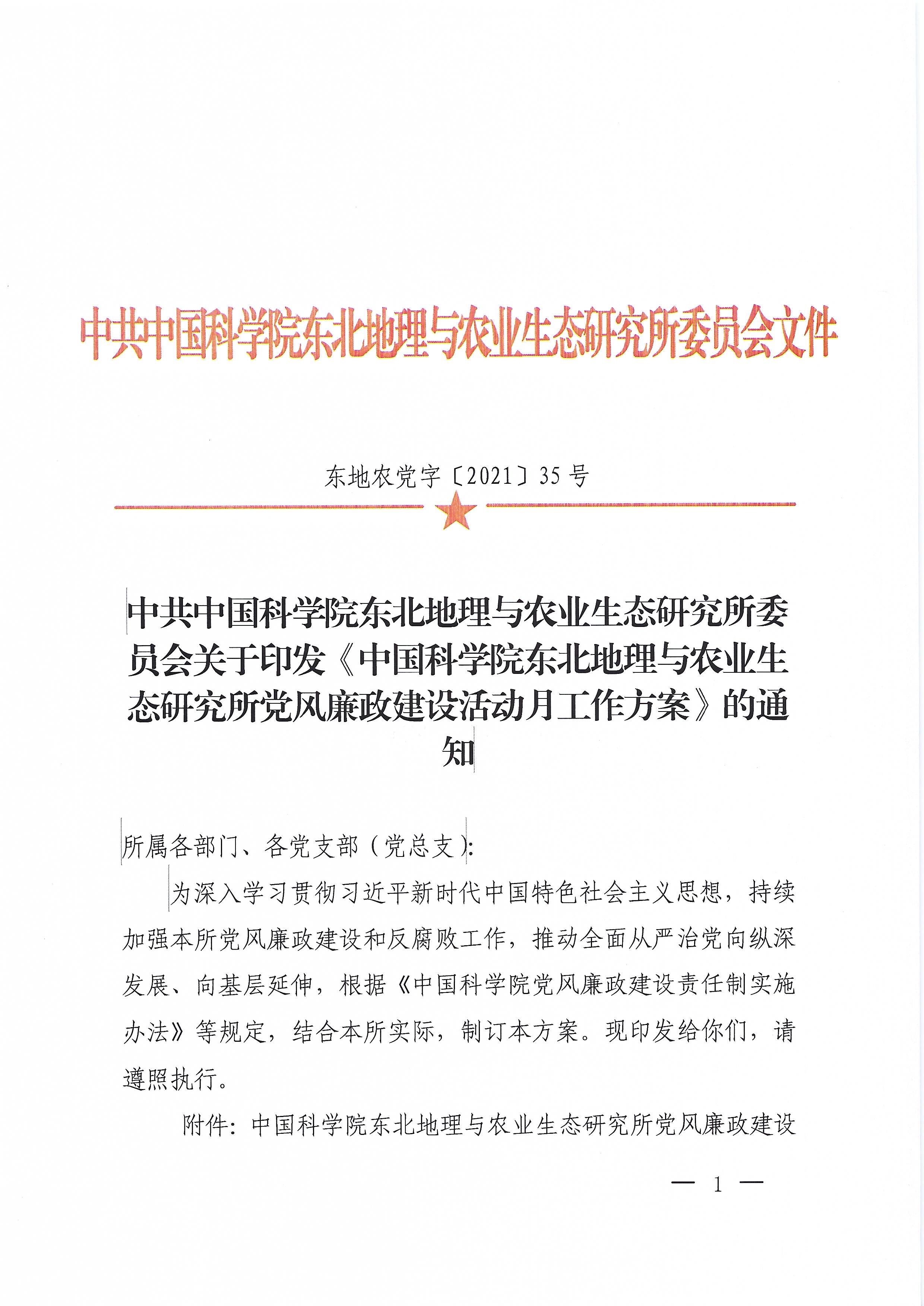 中共中国科学院东北地理与农业生态研究所委员会关于印发《党风廉政建设活动月工作方案》的通知