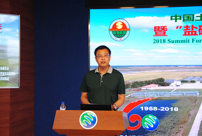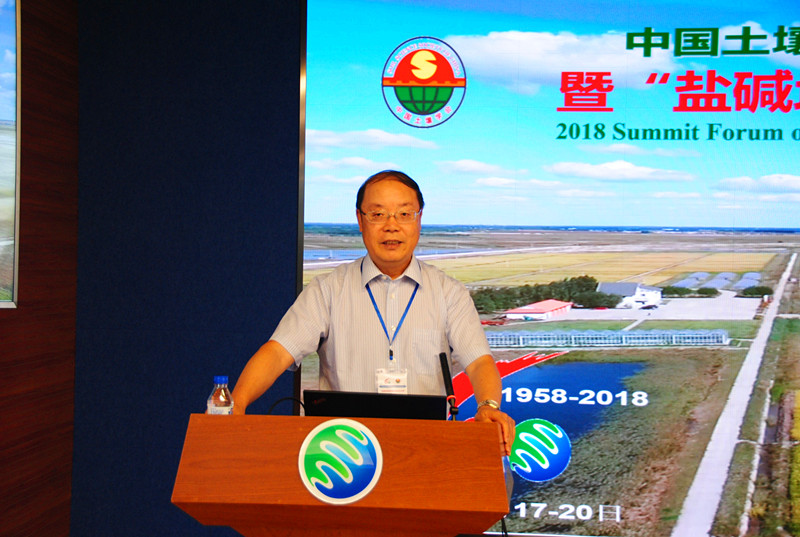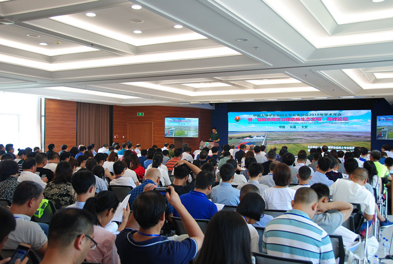 2018年7月17-20日, 由中国土壤学会盐碱土专业委员会主办,中国科学院东北地理与农业生态研究所,中国科学院大安碱地生态试验站,新疆土壤与肥料学会承办的中国土壤学会盐碱土专业委员2018年学术年会暨“盐碱地高效治理助推生态文明”高峰论坛分别在吉林省长春市和大安市隆重举行。来自国内外22所大学、72个科研院所相关领域的院士、知名专家、学者以及25家相关企业等与会代表约400余人参加了大会。