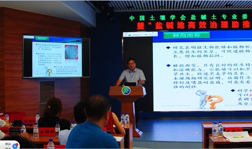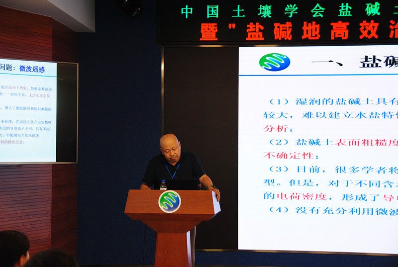 18日下午,来自国内的13位从事盐碱地研究工作的知名专家做了特邀专题报告。中国科学院新疆生态与地理研究所田长彦研究员,中国科学院南京土壤研究所杨劲松研究员,中国科学院遗传与发育生物学研究所刘小京研究员,中国科学院地理科学与资源研究所康跃虎研究员,清华大学能源与动力工程系王淑娟教授,西北工业大学应用化学系宁荣昌教授,中南大学薛生国教授,中国农业科学院农业资源与农业区划研究所程宪国研究员、鲁东大学资源与环境工程学院傅金民教授,以及中国科学院东北地理与农业生态研究所王志春研究员、赵凯研究员、田春杰研究员和梁正伟研究员等围绕我国西北新疆盐碱地、河套平原盐碱地、滨海滩涂盐碱地及中低产田,东北松嫩平原盐碱地治理研究进展与系统解决方案,以及微波遥感、土壤微生物、生物刺激素等新方法、新技术、新产品在盐碱地治理上的应用等分别做了专题学术报告。