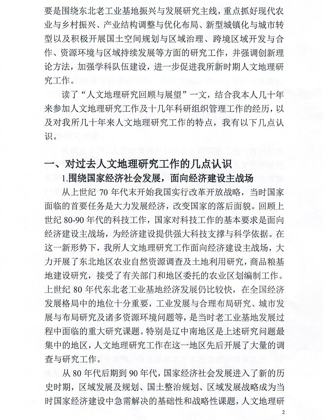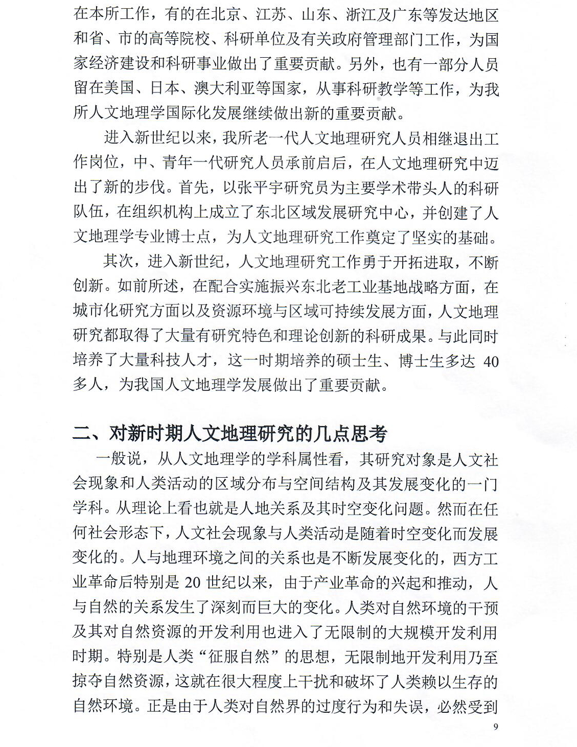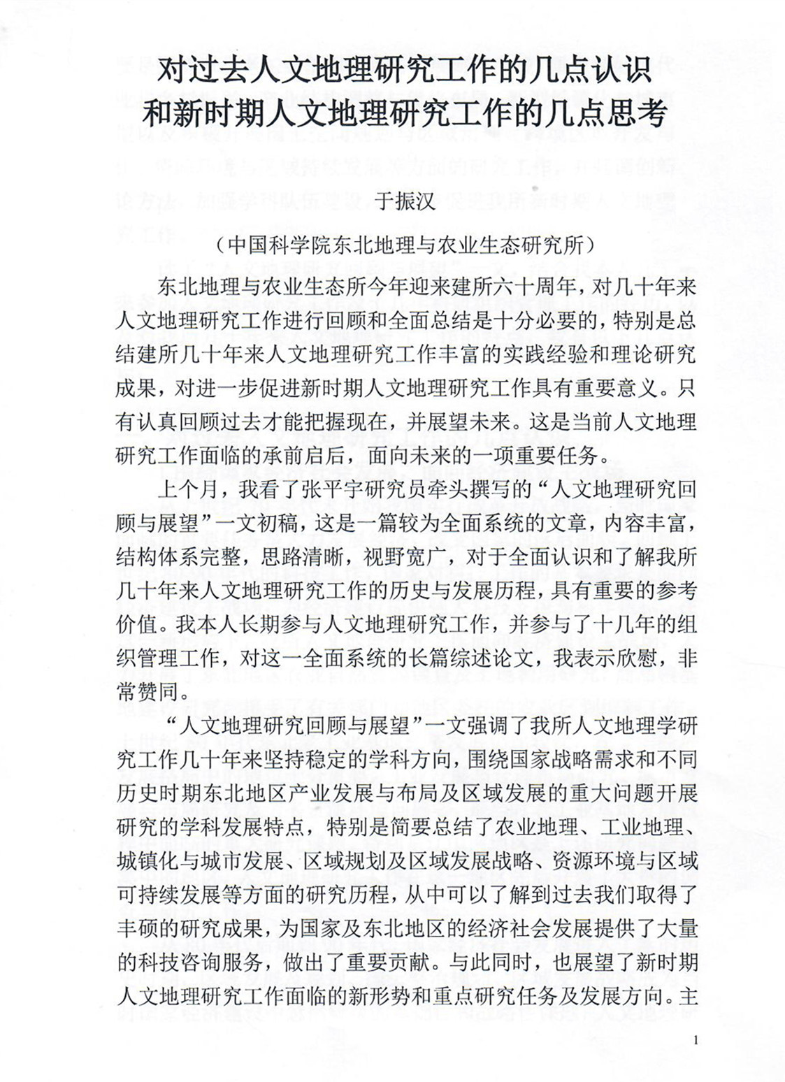 对过去人文地理研究工作的几点认识和新时期人文地理研究工作的几点思考