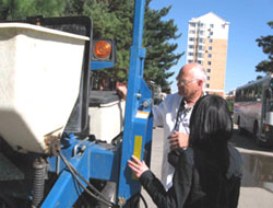 在长春期间,Neil博士访问了吉林省农机研究院,与该院科技人员进行了深入广泛的交流,并对免耕播种机存在的问题进行了维修和调整,Neil博士还对该院新研制的玉米收获机进行了现场指导。