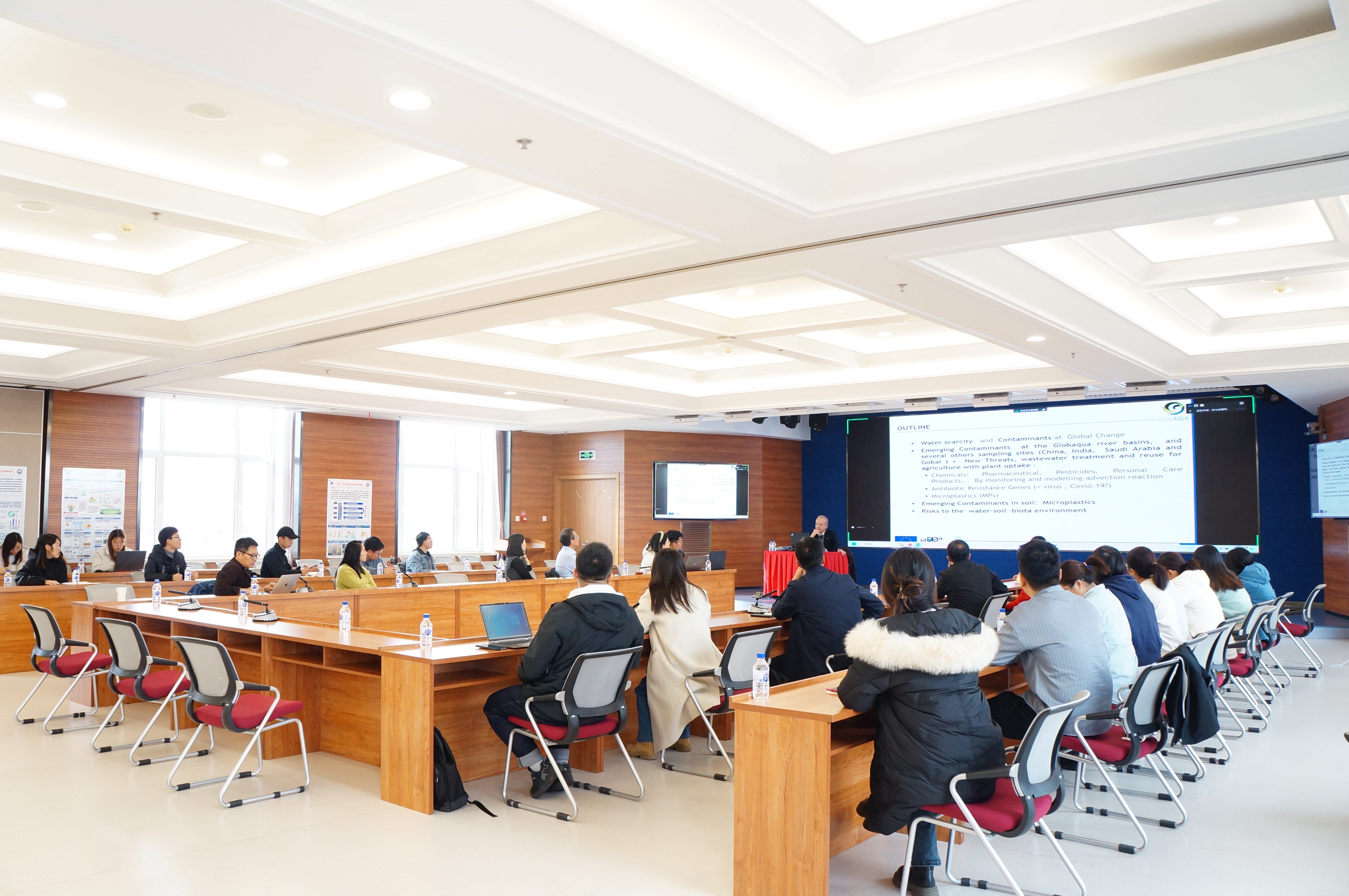 在学术报告会上,Dami Barcel 教授以“Climate change and emerging contaminants in soil-water systems”为题,重点介绍了全球变化情景下土壤-水资源系统中新兴污染物的环境风险及阻控技术。Dami Barcel 教授首先阐述了全球变化中的水资源短缺现状和主要污染物分布,介绍了全球气候变化与水资源问题、气候变化与森林保护的挑战与应对、城市用水问题与解决方案等;随后系统阐述了中国、印度、沙特阿拉伯等全球热点国家的废水处理及新兴污染物对河流水资源与农作物的新威胁,特别强调了化学农药、制药和工业污染物监测评估的重要性及其与新兴污染物关联,重点分析了水体污染、微塑料和抗生素滥用等对生态系统产生的影响及健康风险。Dami Barcel 教授的报告内容丰富、深入浅出,引起与会科研人员和研究生的广泛兴趣。报告结束后,与会人员针对报告中的热点问题展开了热烈交流,特别是英国前首相特蕾莎梅访华期间对我所王文锋研究员微塑料防控成果的肯定,得到了Barcel 教授的高度关注。