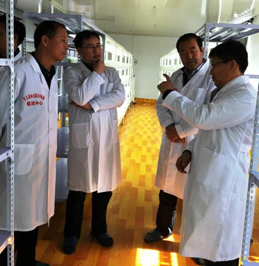 专家一行主要参观考察了宝兴林场的林下植物种苗繁育中心,该中心为所县合作的首个重要成果,现有300平方米组培中心、2栋360平方米智能温室和1栋300平方米大棚。在赵恒田研究员的指导下,当地技术人员已经娴熟掌握了组培繁育技术,繁育出适合东北地区的4个中科系列蓝靛果新品种以及部分山野菜种苗,具备年繁100万株各类种苗的实际能力。赵恒田研究员计划依托新落实的科研项目,在宝兴林场建设100公顷林下经济科研示范基地。