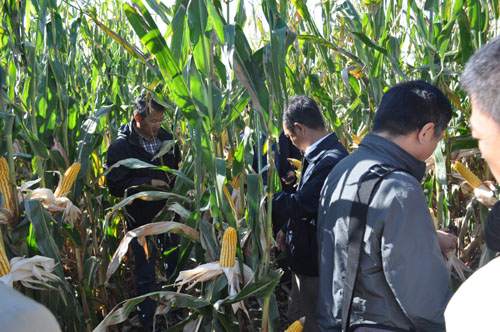 与会专家首先参观了中国科学院东北地理与农业生态研究所优质高产多抗玉米新品种选育展示田。关义新研究员向各位专家重点介绍了我所利用流程化育种技术选育玉米新品种情况。目前我所已经选育出一批可与外资公司品种相抗衡的高产多抗玉米新品种,3年多点测试结果显示在吉林省、辽宁省等地区新品种比主推品种先玉335增产5-8%。与会专家均对我所培育的玉米新品种给予了高度评价。
