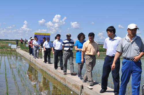 2013年6月20日下午,中国科学院长春分院王利祥院长、李冰副院长等分院领导在何兴元所长陪同下,考察我所大安碱地生态试验站和长岭等地高光效种植技术推广落实情况。