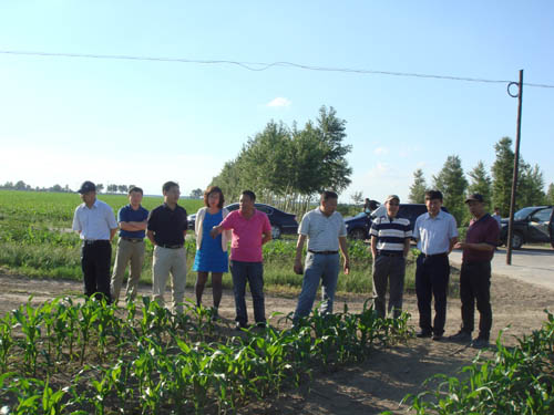 随后,王利祥院长一行考察了我所“高光效种植技术”推广示范区。在大安市安广镇永富村玉米高光效示范田,种植大户刘主任向王利祥院长等领导介绍了高光效在当地的推广情况。2010年,高光效种植技术在该村由种植户自发引进,3年来,增产效果显著,该技术已成为当地玉米种植的主要模式。