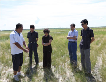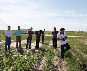 7月23日,黑龙江省科技厅社发处高艳丽处长来到大庆市杜蒙县他拉哈镇盐碱化土地综合治理试验基地进行视察,对我所承担的国家科技支撑计划课题“半干旱盐碱化地区退化生态系统综合整治技术与示范”的研究工作给予了指导,陪同考察的还有项目所在地杜蒙县科信局曹连禧副局长与路东斌主任。