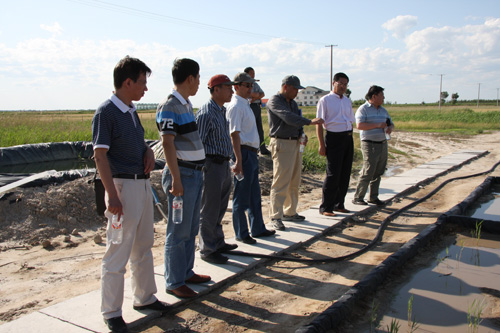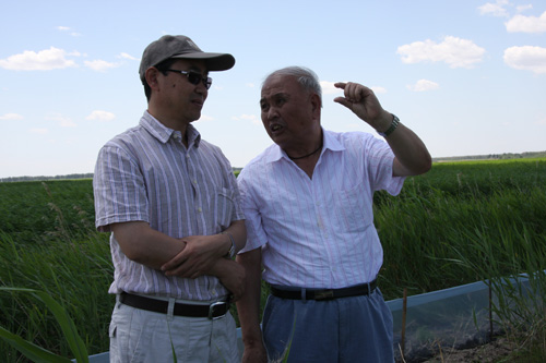 何所长一行此次工作行程安排十分紧密,并克服道路等条件艰苦因素,远赴白城镇赉、大安两市县四个项目区。在镇赉县五棵树乡,实地查看了我所正在执行的盐碱地种稻技术研究与示范项目进展,听取了梁正伟、王志春、杨福等研究员的工作汇报。在大安站,查看了梁正伟研究员等承担的院西部行动计划课题进展,了解了大安站科研基础设施建设状况及有关实验布设概况;听取了章光新研究员的地下水盐运移实验平台建设及工作进展,详细询问了院松嫩水项目群实验工作开展状况。在大安月亮泡镇查古敖村,详尽了解了张晓平研究员等有关大安古河道万亩水稻试区建设的工作情况,走访并征寻了有关农户对我所科研人员工作的积极评价。在大安牛心套保项目区,与刘兴土院士亲切交流了吉林省农业开发项目“盐碱地芦苇生态修复”的有关技术问题,并与刘院士一起沿着沟壑步行查看芦苇实验样区。