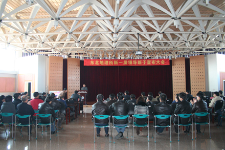 2010年4月23日,在东北地理所召开了新一届领导班子宣布大会。中国科学院人事教育局领导干部处陈光处长、中国科学院长春分院王利祥院长、甘建国书记、李冰副院长、组织人事处于学峰处长等出席了大会。
