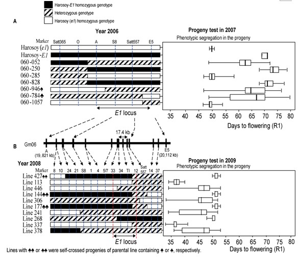生育期长度是决定大豆产量的重要因素之一,并与种植纬度、种植季节密切相关,是育种主要选择目标性状,而生育期是光周期反应的重要指标。
