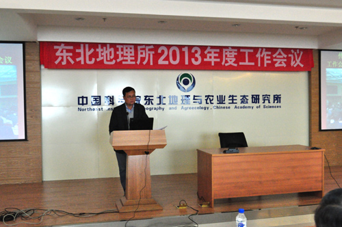 大会结束前,何兴元所长做大会总结。他首先强调各部门要认真组织学习贯彻和领会2013年院工作会议精神,要以中国科学院新时期发展战略为指针,按照“创新2020”跨越发展体系总体部署,着力构建研究所“三位一体”发展架构,深入实施研究所“一二四”战略规划,切实履行“出成果出人才出思想”的战略使命。然后,他从战略高度直接提出了三个引发大家深思的问题:一是与时俱进,面对学科发展前沿和国家需求的变化,不断审视和思考研究所的战略定位与发展方向问题;二是推动重大成果产出,强调我所应加强院地合作,增强科技服务的活跃度和显示度,为吉林省乃至东北地区的社会经济发展提供科技支撑;三是以培养引进高端领军人才和亟需专门人才为重点,统筹实现人才队伍近期建设目标和长期发展远景。最后,他对研究所农业、湿地、遥感和环境等重点学科领域进行了深入剖析,提出了一系列问题,为未来几天的战略研讨会布置了“作业”。何所长的总结讲话字字关乎研究所的发展,句句关乎研究所未来努力的方向,博得了全场热烈的掌声。