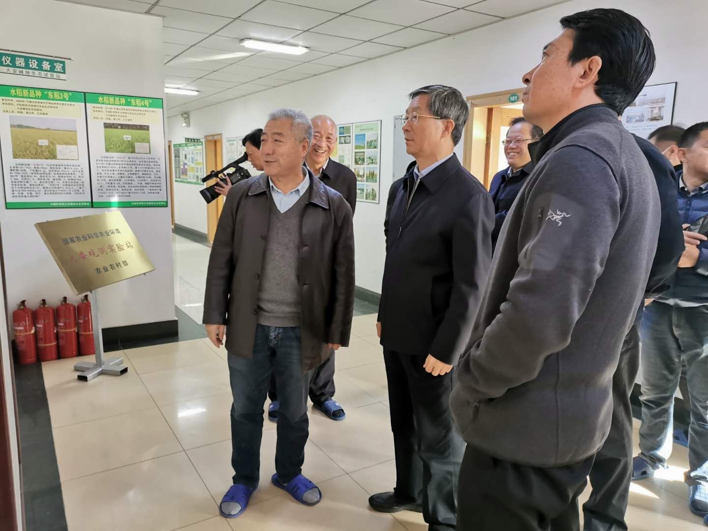 曹卫星一行首先听取了梁正伟对大安站建站以来取得的重要进展和亮点科研成果的汇报,然后参观了大安站基地实验室和科研成果展、劳模创新工作室。并到田间先后考察了羊草种苗培育与羊草植被恢复试验区,水稻品种耐盐碱精密梯度试验区,水稻种质资源和育种品比试验圃等。曹卫星对大安站多年来取得的成果给予了高度评价,对盐碱地改良,以及如何利用盐碱地发展优质草地畜牧业经济,促进吉林社会经济发展提出了许多宝贵建议,并祝愿大安站工作再接再厉、不断取得新成果。