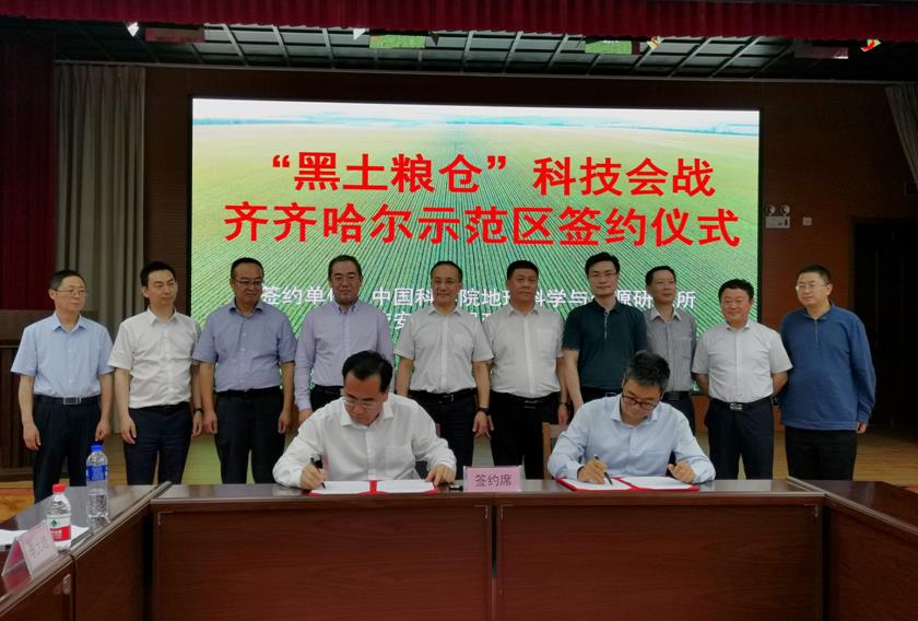 6月16日,张涛与齐齐哈尔市政府主要领导召开座谈会并签署示范区建设协议。齐齐哈尔市副市长李拥军在致辞中说,多年来,中科院、黑龙江省农科院对齐齐哈尔市黑土地保护与利用工作给予了大力支持和精心指导,奠定了“黑土粮仓”科技会战合作的坚实基础,齐齐哈尔市将以本次合作为契机,在黑土地保护利用关键技术等方面强化科研攻关,重点在黑土健康调控与农产品品质创优、黑土地保育增效技术、高寒黑土多源增碳增效技术、黑土地保护利用与乡村振兴有机融合、黑土粮仓全域定制模式创建与示范应用五个方面开展模式攻关,进一步加强沟通合作,共筑友谊金桥,共享合作硕果,共同保护好“耕地中的大熊猫”。