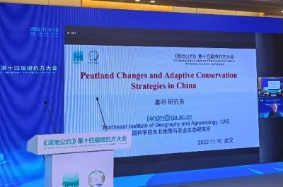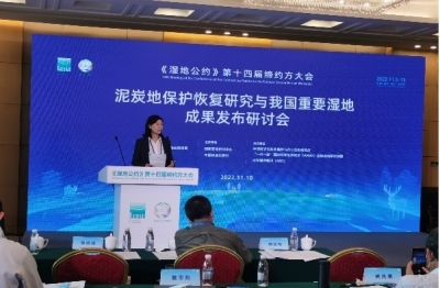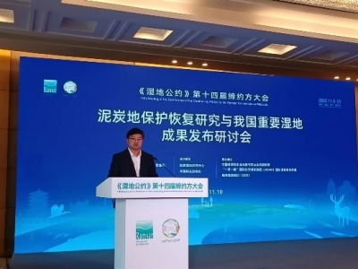 泥炭地碳储量巨大,对于减缓气候变化具有重要意义。中国始终把应对气候变化、开展泥炭地保护管理视作自身可持续发展的内在要求和构建人类命运共同体的责任担当。11月10日,在《湿地公约》第十四届缔约方大会期间,“泥炭地保护恢复研究与我国重要湿地成果发布”研讨会成功召开。作为东道国系列重要活动之一,会议聚焦我国泥炭地保护的基础理论及关键技术问题开展研讨,旨在推动我国泥炭地学的理论体系构建和泥炭地恢复技术的快速发展,服务国际履约,助力实现“双碳”战略。会议同步进行了湿地领域重要成果的发布与推介。国家林业和草原局湿地管理司作为指导单位,由国家湿地研究中心和中国林业出版社联合主办,中国科学院东北地理与农业生态研究所、“一带一路”国际科学组织联盟(ANSO)国际湿地研究联盟、地球观测组织(GEO)承办,会议采用线上线下相结合的方式,250余人参加了会议。