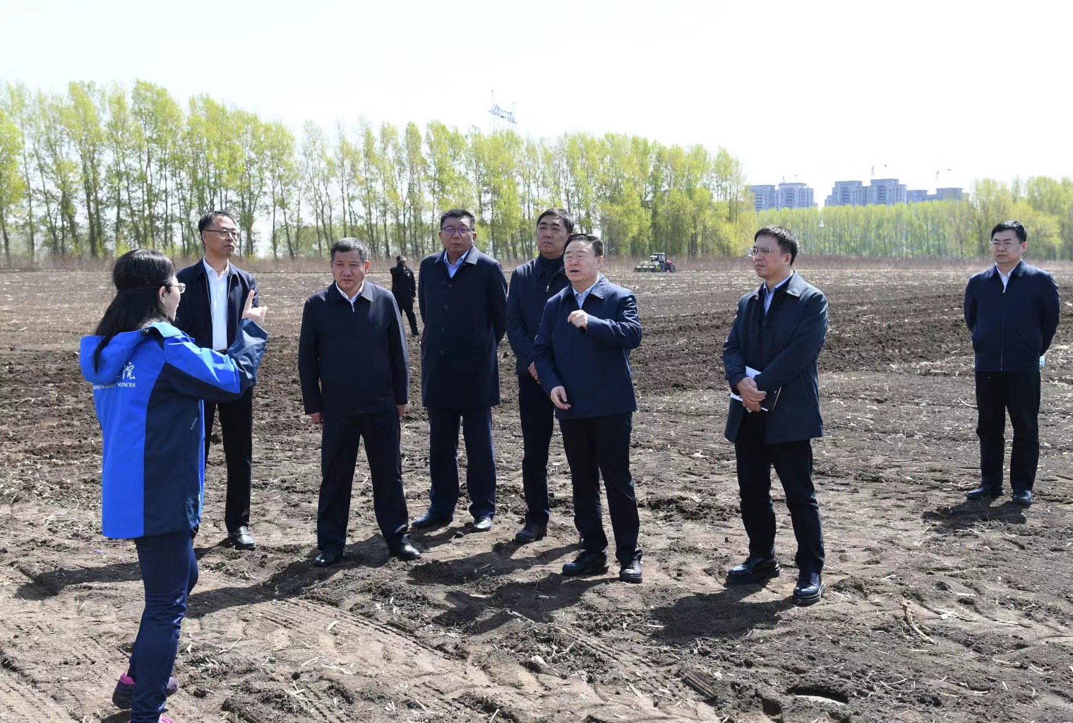 2023年5月1日上午,吉林省委常委、长春市委书记张恩惠来到农安县“黑土粮仓”科技会战长春示范区-陈家店万亩核心示范基地,查看土壤墒情及春播进度。长春示范区负责人梁爱珍研究员介绍了示范区的建设情况,包括示范面积、建设思路、发展目标、技术部署和智慧农业区建设等情况。长春示范区本年将借助天空地一体化遥感技术,开展多要素、多时段立体监测,与农安县农业建设工作结合起来,打造智慧农业样板示范基地。