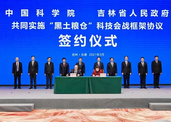 3月29日,中国科学院和吉林省人民政府在长春共同启动“黑土粮仓”科技会战。中科院院长、党组书记侯建国,吉林省委书记景俊海,吉林省委副书记、省长韩俊等出席活动。中科院副院长张涛和吉林省副省长李悦代表双方签署了科技会战框架协议。