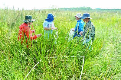 中国科学院东北地理与农业生态研究所的科研人员在三江平原对恢复湿地进行生态监测。光明图片